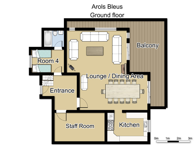 This extremely popular detached chalet is comfortably furnished throughout, with the added bonus of its own sauna. Situated between its neighbour chalets Le Cèdre Blanc and Le Mélèze Doré, the location is ideal.