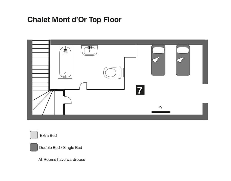 Bedroom 7 – small double/twin, en-suite. (On top floor)
