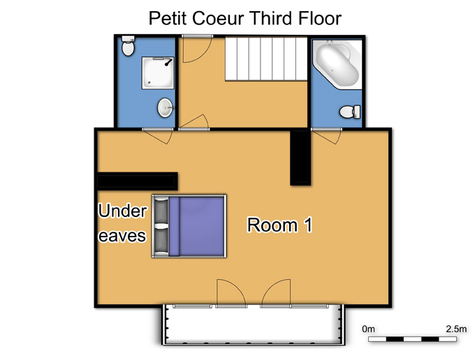 Room 1 - Master double with bathroom, separate shower room, wc and balcony (both bathrooms are partially under eaves)
