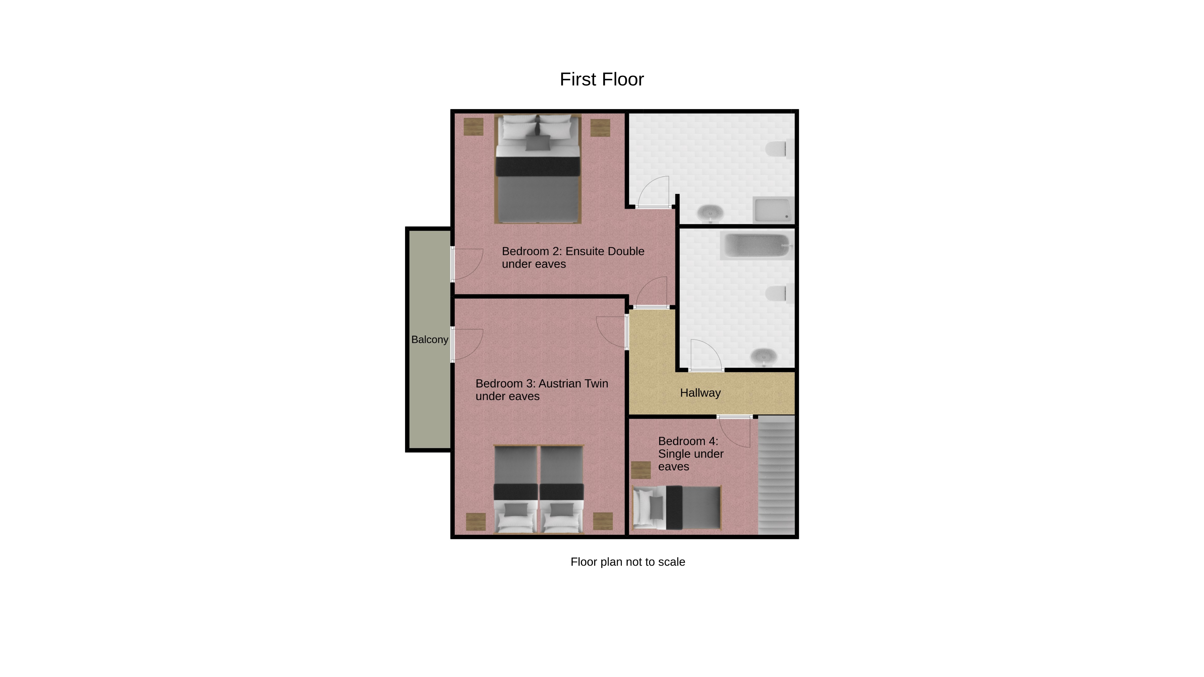 Austrian Twin* (under eaves) (shared balcony, space for cot)
