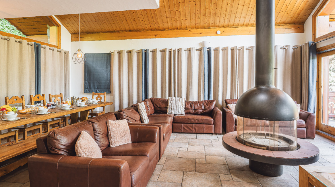Sizeable and Comfortable – After a day on the snow, kick off your boots in the big ski room (with heated boot racks for all) and head upstairs to enjoy an aperitif on the sun terrace, or soak up the last of the sunshine in the outdoor hot tub. Then come into the large light-filled sitting/dining room and unwind around the central suspended fireplace to plan your next adventures!