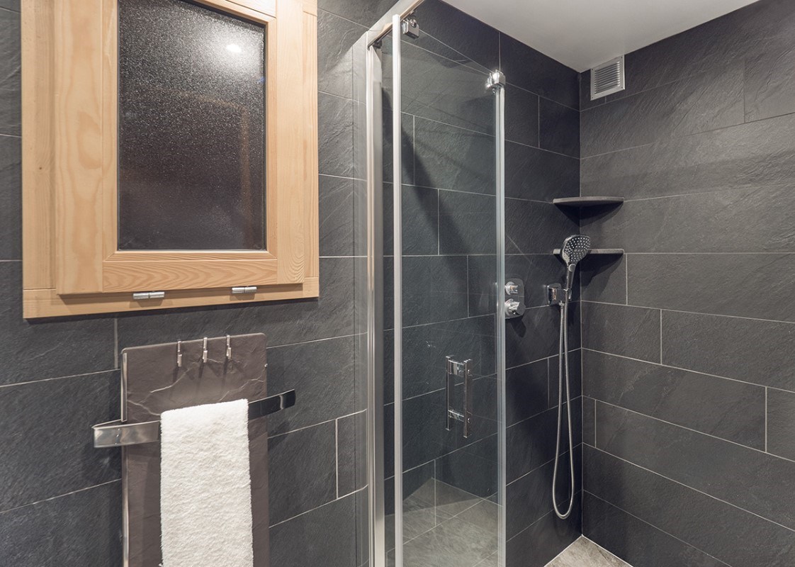 The décor is smart and contemporary and we have thrown in a few toys as well, with wall mounted TVs in the bedrooms and some decent sounds in the living room. The bedrooms in Chalet Yukon are located on the lower floor. There is one double bedroom with an en suite shower, separate wc and secluded terrace with amazing views and direct access to the hot tub, plus a twin bedroom with en suite bathroom.
