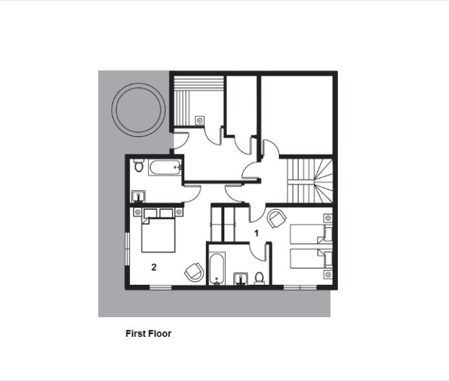 (Second floor) - Twin bedroom with balcony, en suite bath, handbasin and WC.