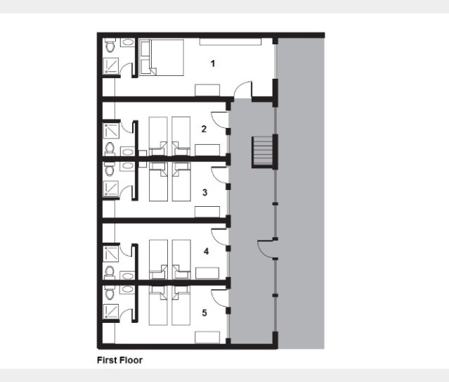 (First floor) - Twin with en suite shower, handbasin and WC. Limited space for an extra temporary bed or cot.