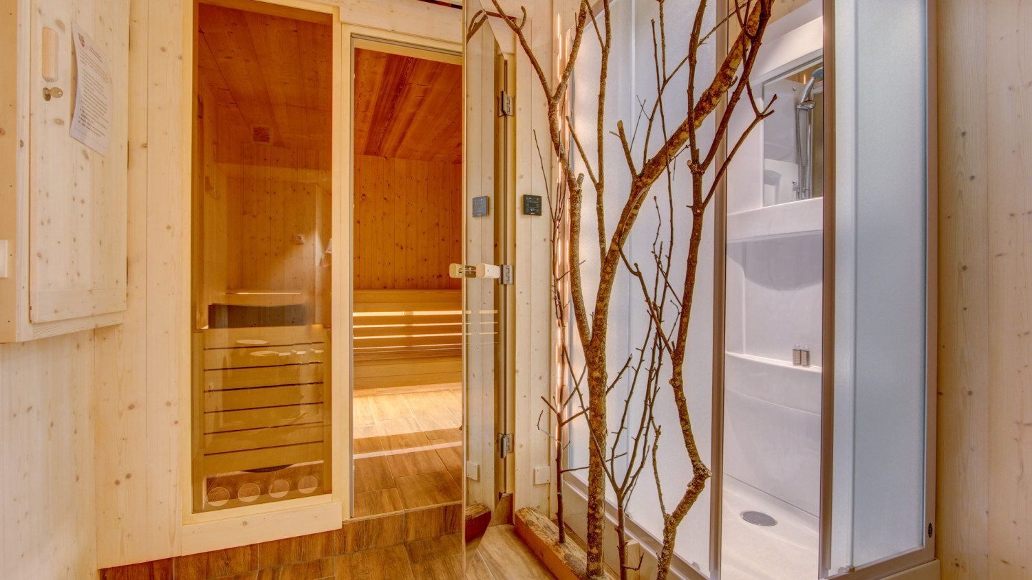 Sauna area with shower