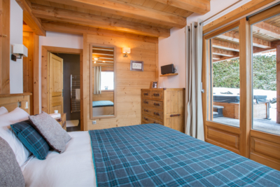 The chalet sleeps 10 – 12 across its 4 ensuite bedrooms and one bedroom with separate shower room. There is a large TV in the living room and one in the bottom bedroom which can double as a lounge. Relax in the large outdoor hot tub or by the fire with a glass of wine after a hard days skiing.