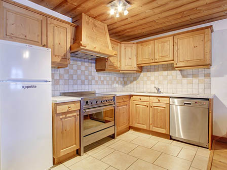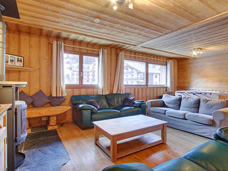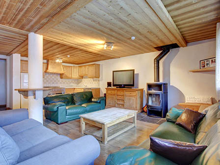 The chalet is two separate apartments, linked by an internal staircase, located over two upper levels of a charming building in keeping with local style. It offers an authentic mountain ambience thanks to a combination of tiled and exposed wooden floors, wood cladded walls and is modern in décor.