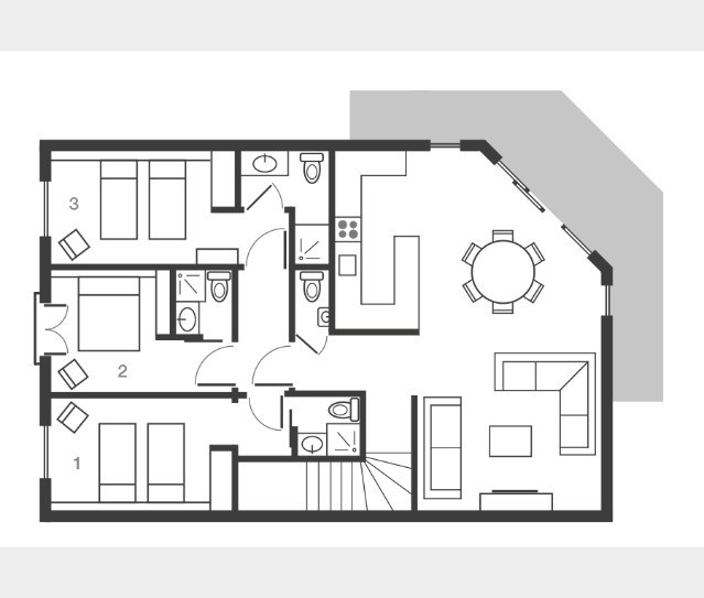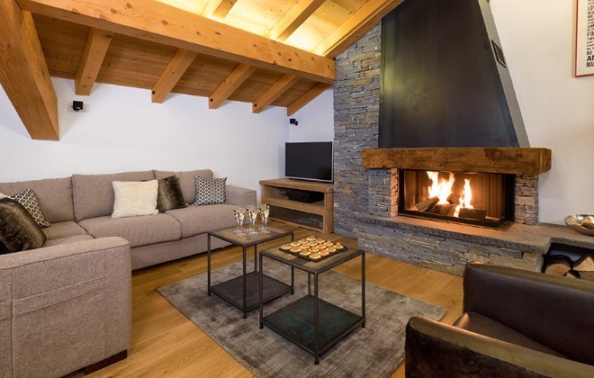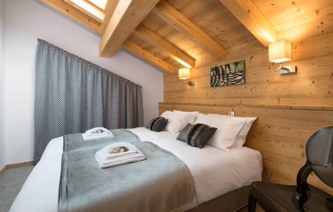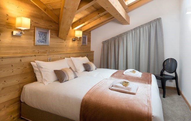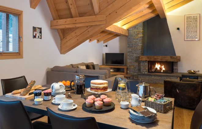 A high vaulted ceiling lends space and grandeur to this handsome penthouse loft, decorated with the usual toys, flatscreen TV, WiFi, a smart funky fireplace and 3 rear facing bedrooms. The apartment is entirely independent with its own living and dining area and a dedicated chalet host. It’s hard not to feel a little bit pleased with yourself when walking into this chalet.