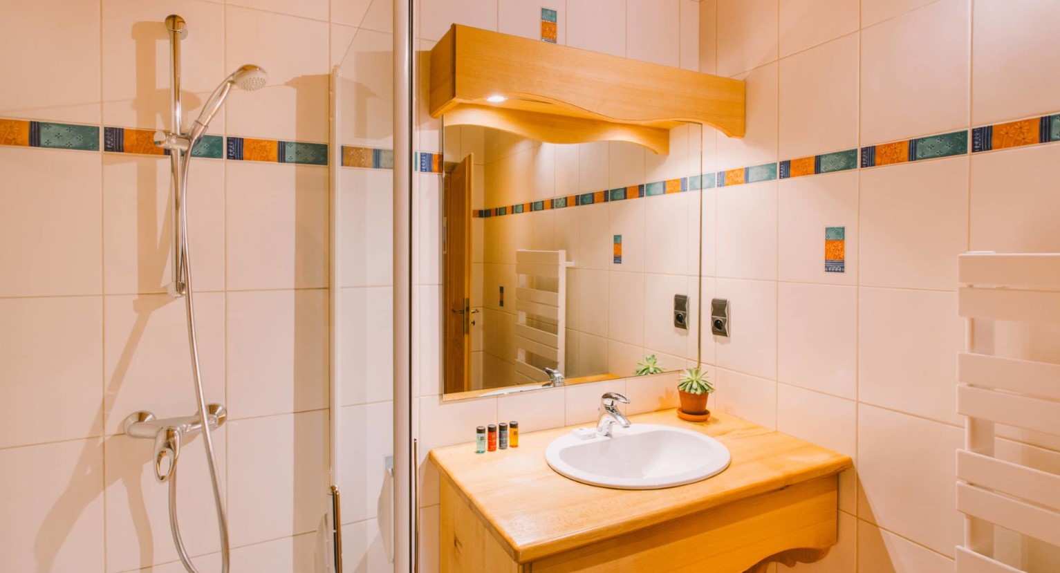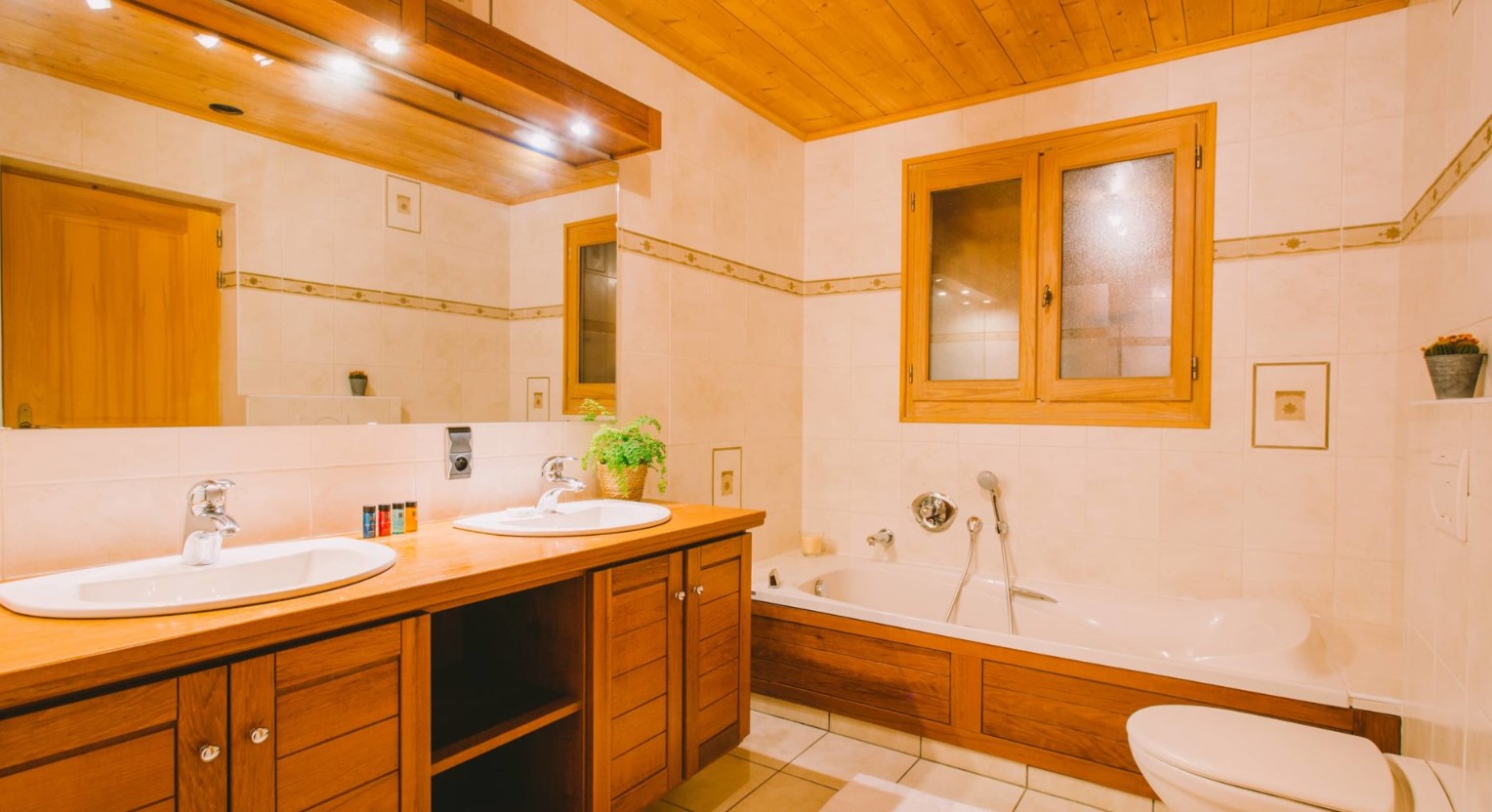 The chalet has six bedrooms, five of which are ensuite. The remaining room has its own bathroom situated at the end of the corridor. The chalet sleeps up to 14 guests (maximum of 12 adults).