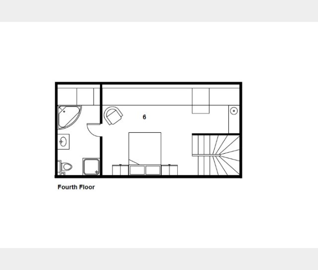 (Fourth floor) - Large double with en suite bath, separate shower, basin and WC. Limited space for an extra temporary bed or cot.