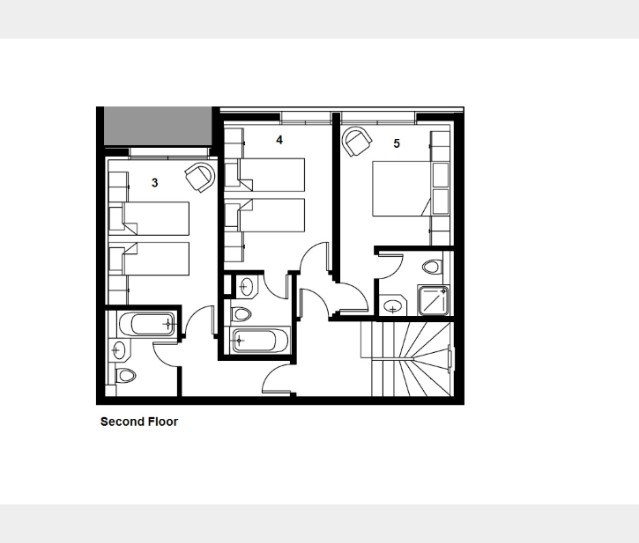 (Second floor) - Twin with en suite bath, basin and WC.