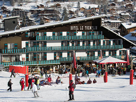 "Hotel Le Tremplin in Morzine has the perfect ski in ski out location with a fantastic terrace the fronts straight out onto the slopes."