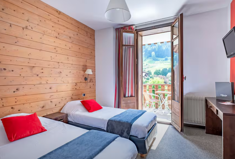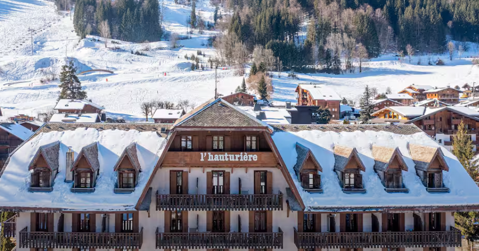With cream walls and traditional wood-timbered balconies, the hotel’s got history too – once called L’Hauturière, it’s the oldest hotel in the town. Inside, rooms are simple and modern with clean lines, grey tones and splashes of colour. When you fancy recharging your skiing batteries, the wellness area’s your go-to, with a sauna, hot tub and hammam to relax in.