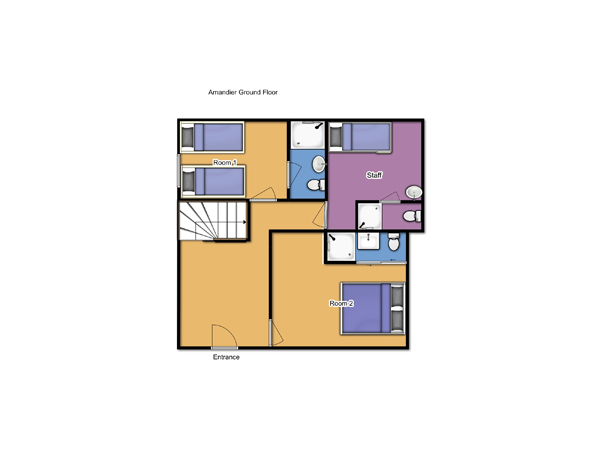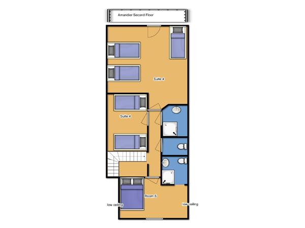 Suite 4 - (Sleeps 2-5) Master twin bedroom with third bed for child only and separate twin bedroom with shower / wc off interconnecting hallway