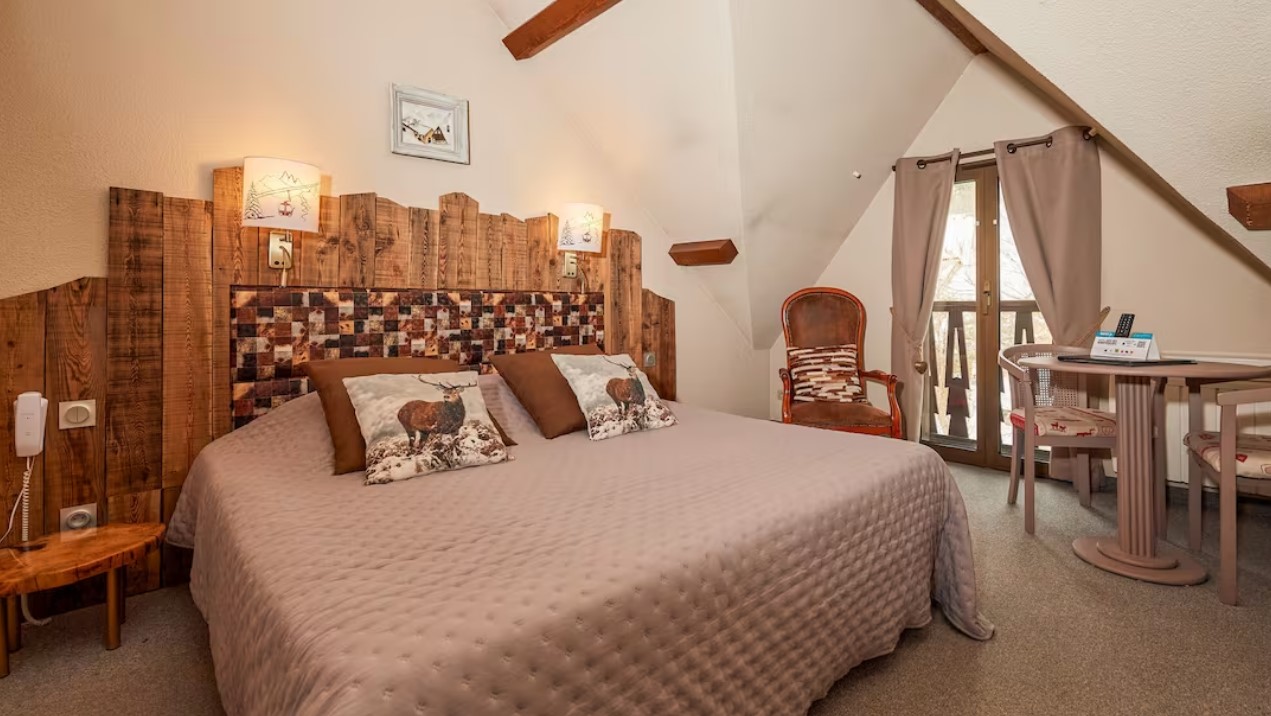 There are quirky touches all over here, from the tables in the bar shaped like giant blacksmith bellows to the vintage snowshoes and mountain climbing tools on the walls in the restaurant. As for the rooms, ski-themed artwork, faux fur throws and wood panelling give each one it’s own look and feel.