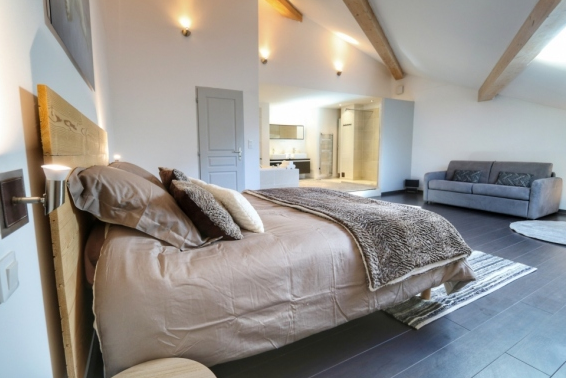 - Master bedroom suite with double bed, sofa bed bathroom (bath and shower)