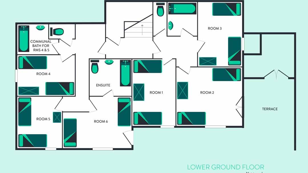 Twin rooms with twin beds (1, 3, 4, 5) - sleeps 2.