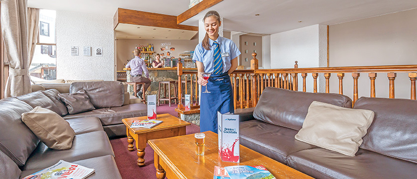 The cosy dining-room has a large bay window overlooking the centre of Val Claret, and the comfortable lounge area will have its own dedicated bar exclusively for resident guests only. There is also a public bar on the lower-ground floor,managed by the hotel but with its own separate access from the street, and well insulated from the guest bedrooms, which are all two floors or more away from the bar.