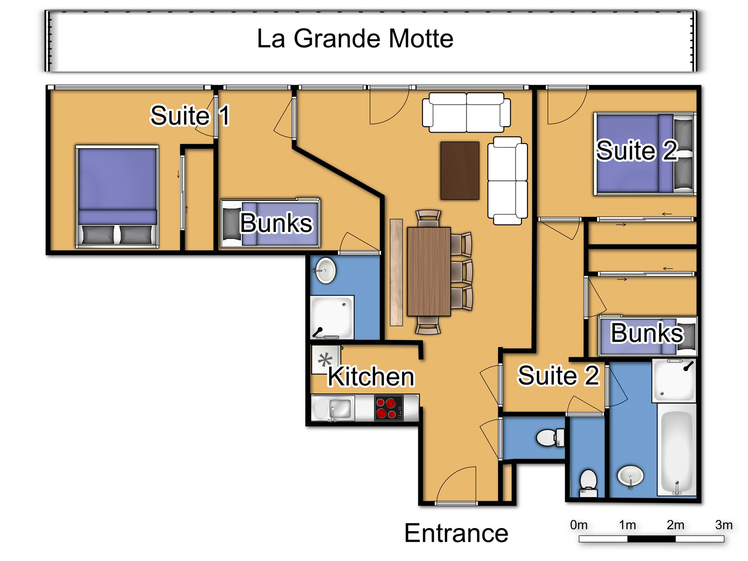 Conveniently located close to the resort centre, with a traffic-free stroll along the edge of the lake to the nursery slopes and the main Aeroski lift, this chalet provides a cosy, intimate home for two families to enjoy their Tignes holiday with us.
