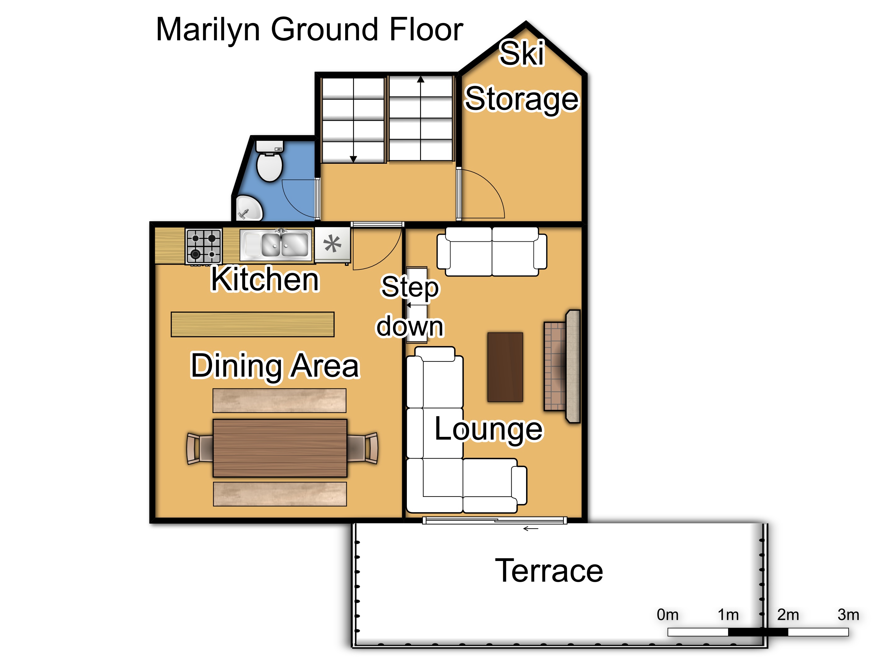 This is a lovely little chalet in the Le Lavachet area of Tignes, just right for a group of friends or family to share. It has a cosy comfortable ambience enhanced by the split-level communal areas, with an open-plan kitchen and dining area overlooking the lounge with its fireplace, flat-screen TV / DVD (don’t forget to bring your favourite DVDs!) and large sun-terrace.