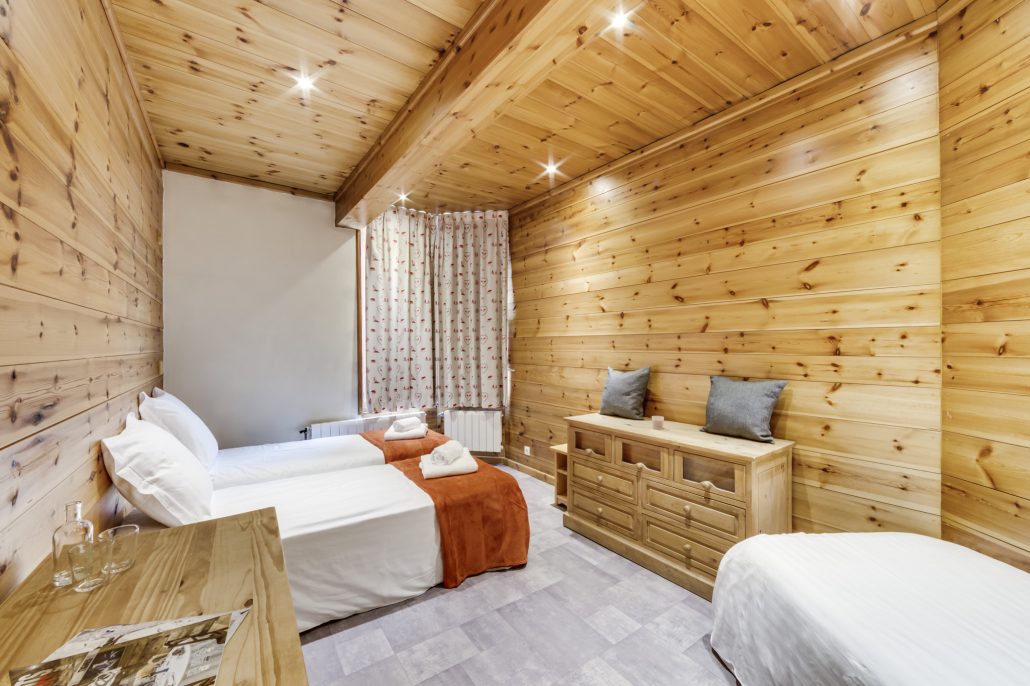 Tichot can comfortably sleep 14 guests or even 15 if someone is happy to sleep on a sofa bed in the communal space which is accessed by two other bedrooms. Five bedrooms benefit from en-suite facilities with the sixth bedroom having a private shower room, easily shared with anybody using the communal sleeping area. The rooms are a combination of single, twin, triple and quad making the chalet style apartment ideal for a group of friends or mix of families.