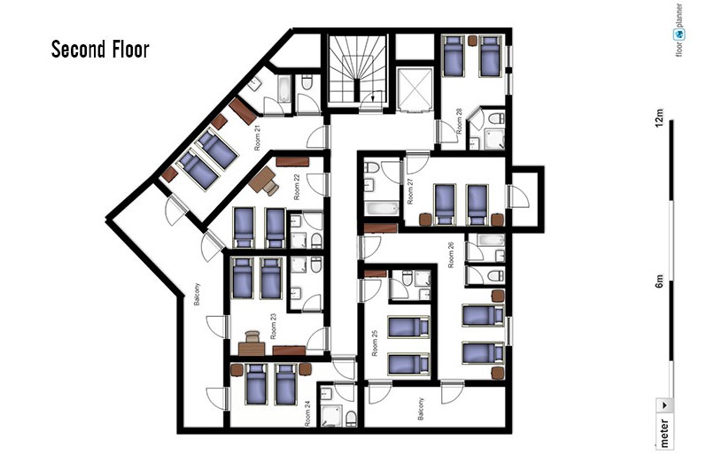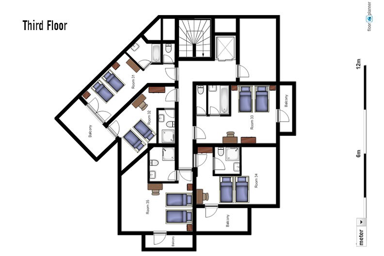 Double room with balcony - sleeps 1-2: Double bed or twin beds, private shower, WC and balcony.