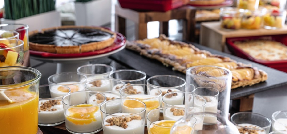 • Buffet includes hot drinks, fruit juice, pastries, selection of breads, jams and spreads, savoury buffet (with eggs, bacon, sausages etc..), fresh fruit and cereals