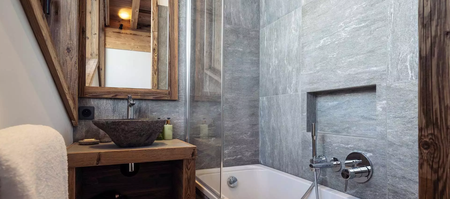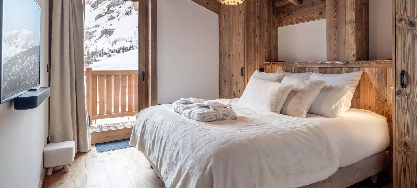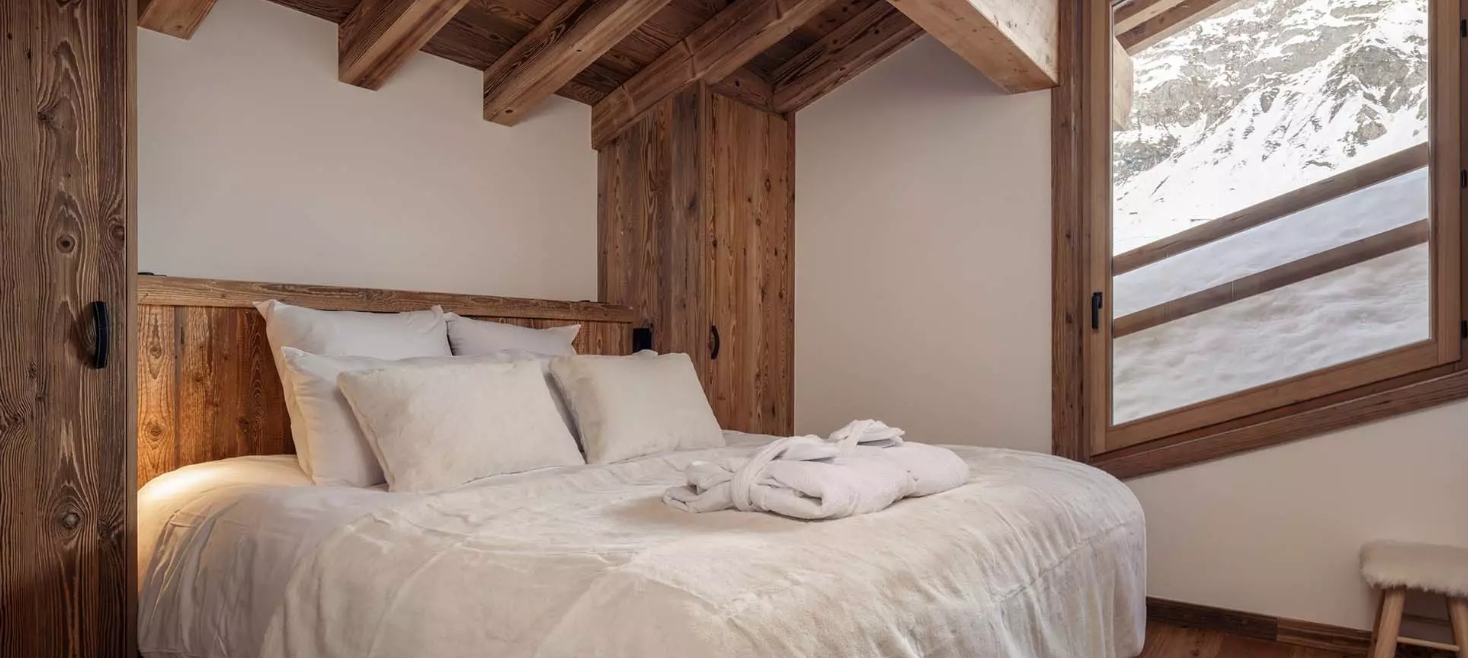 The traditional alpine wood and stone architecture of the chalet blends harmoniously with luxurious modern touches, creating an idyllic space for you to unwind after a long day on the slopes.