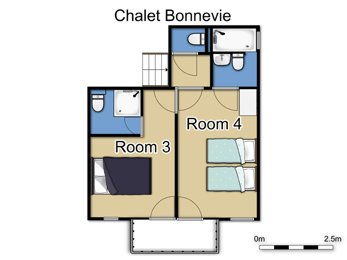 The chalet shares an entrance hall with adjoining Chalet Bonneval and, if so desired, can be combined to sleep 15 / 18 persons if one party books the whole of both chalets together.