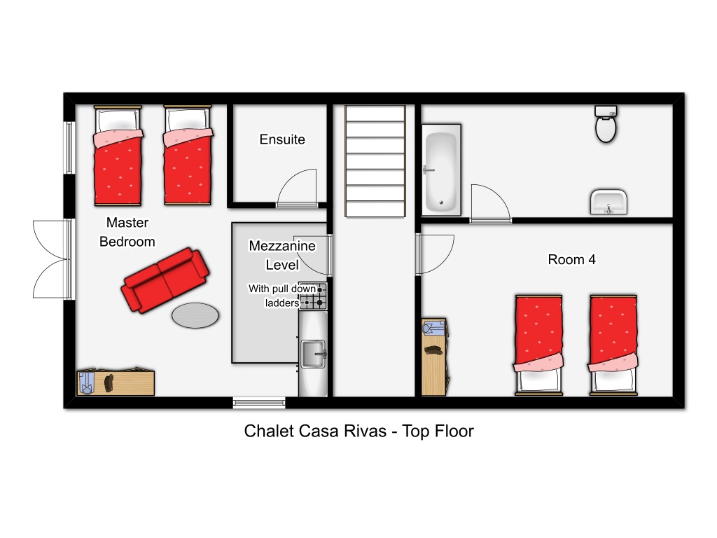 Flexibility - Chalet Casa Rivas comfortably sleeps ten people in the five bedrooms, but room 5 has a mezzanine with the possibility of 2 extra child beds to accommodate a maximum of 12 guests (10 adults and 2 children max). Please call for details.