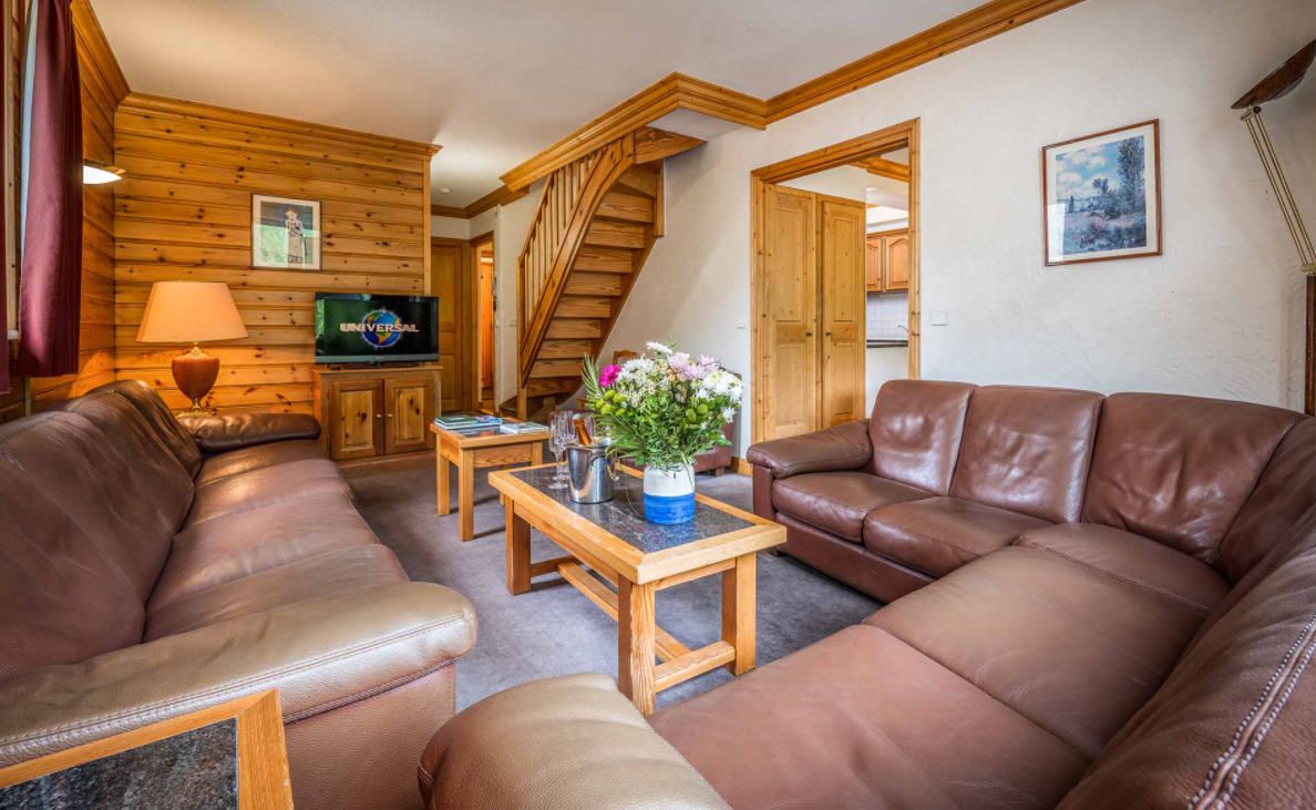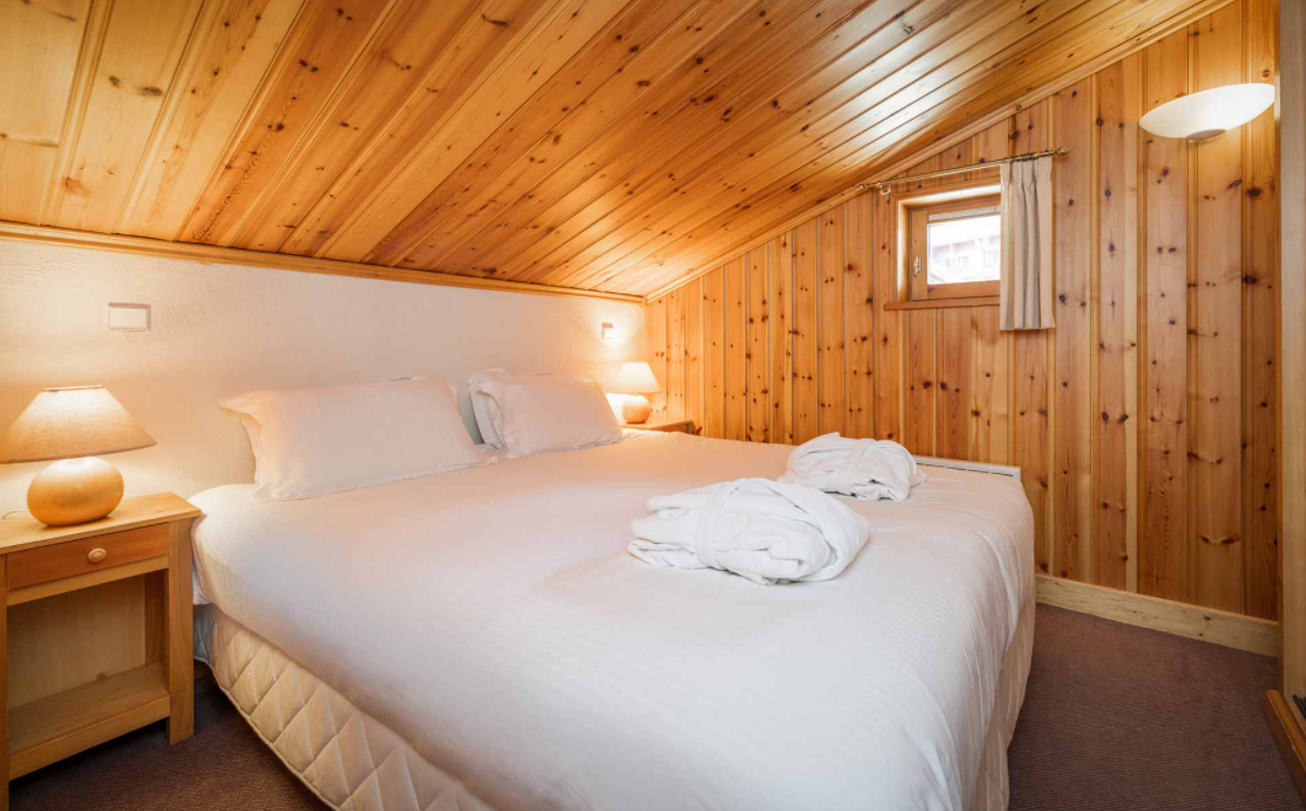 Rustic and friendly- The chalet is divided into two levels, duplex style, with the bulk of the snug compact bedrooms on the upper floor. The bedrooms are set with twin beds, are all en suite with baths or showers and they offer decent storage space.
