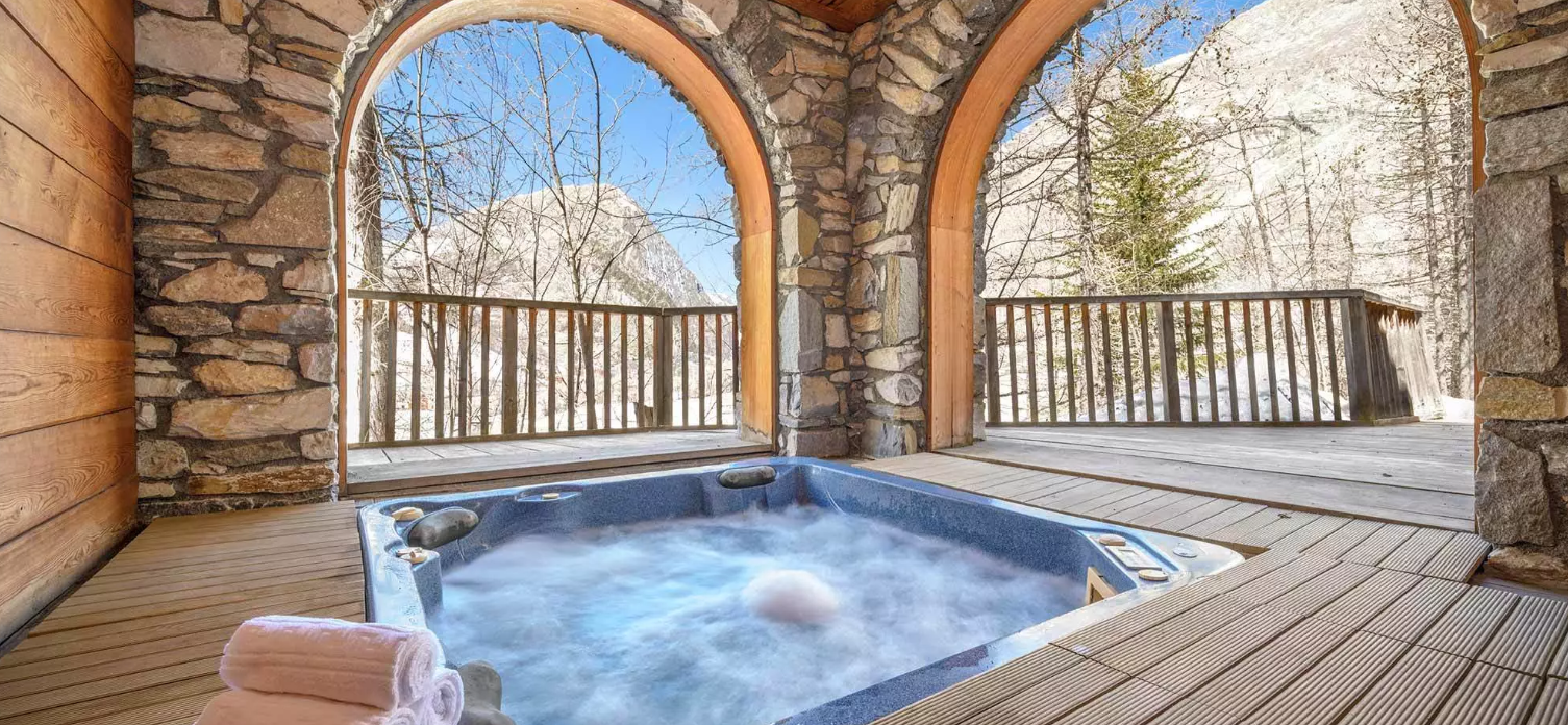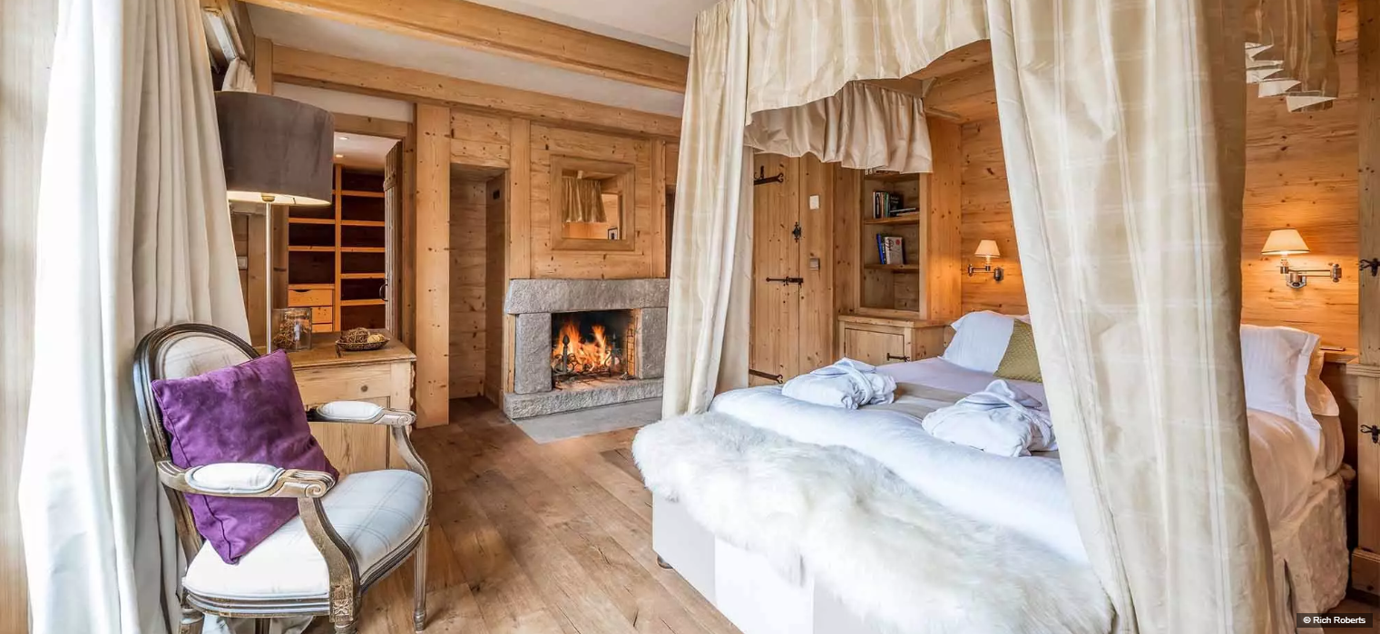 Chalet Davos is part of a small private hamlet that we built on the sun-drenched knoll of Le Cret overlooking Val d’Isere. We tried to fuse the ambience of an old stone village with every present-day comfort. To the smooth stone fireplaces, weathered oak floors and seasoned timbers, we added a veneer of cool contemporary styling including marble bathrooms, handmade squashy sofas, goose down duvets and original art. Indulge yourself in the basement cinema, soak in the inside/outside sunken hot tub and admire the breath taking view from the master bedroom four poster.