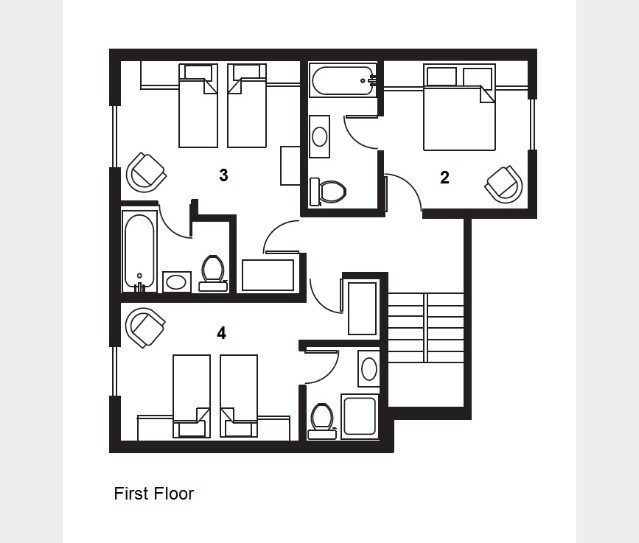 Room 4 (First floor) - Twin bedroom with en suite shower, hand basin and WC.