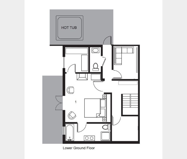 Master Suite (Lower ground floor) - Master double bedroom with terrace, fireplace, dressing room, en suite bath, hand basin and WC. Space for a cot or an extra temporary bed.