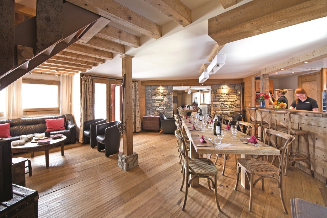 The Chalet Foxtrot has undergone a recent renovation, ready for i-ski guests and to a high standard as can be seen. The interior blends warm pine panelling and beamed ceilings with contemporary fixtures and furnishings and modern touches such as the flat screen TV and free WiFi. The view from the generous terrace off the lounge is a particular feature, providing fabulous mountain views.