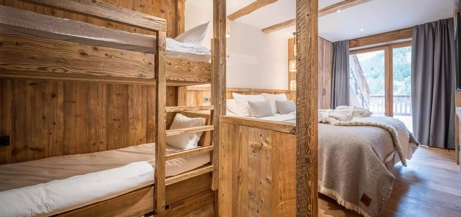 The upper ground floor has a large family suite with twin beds (90x200cms) and an extra children's bunk bed which sleeps 2.The family suite leads off from the dining area so is ideal for those who want to keep an eye on their little ones while enjoying the evening with friends.