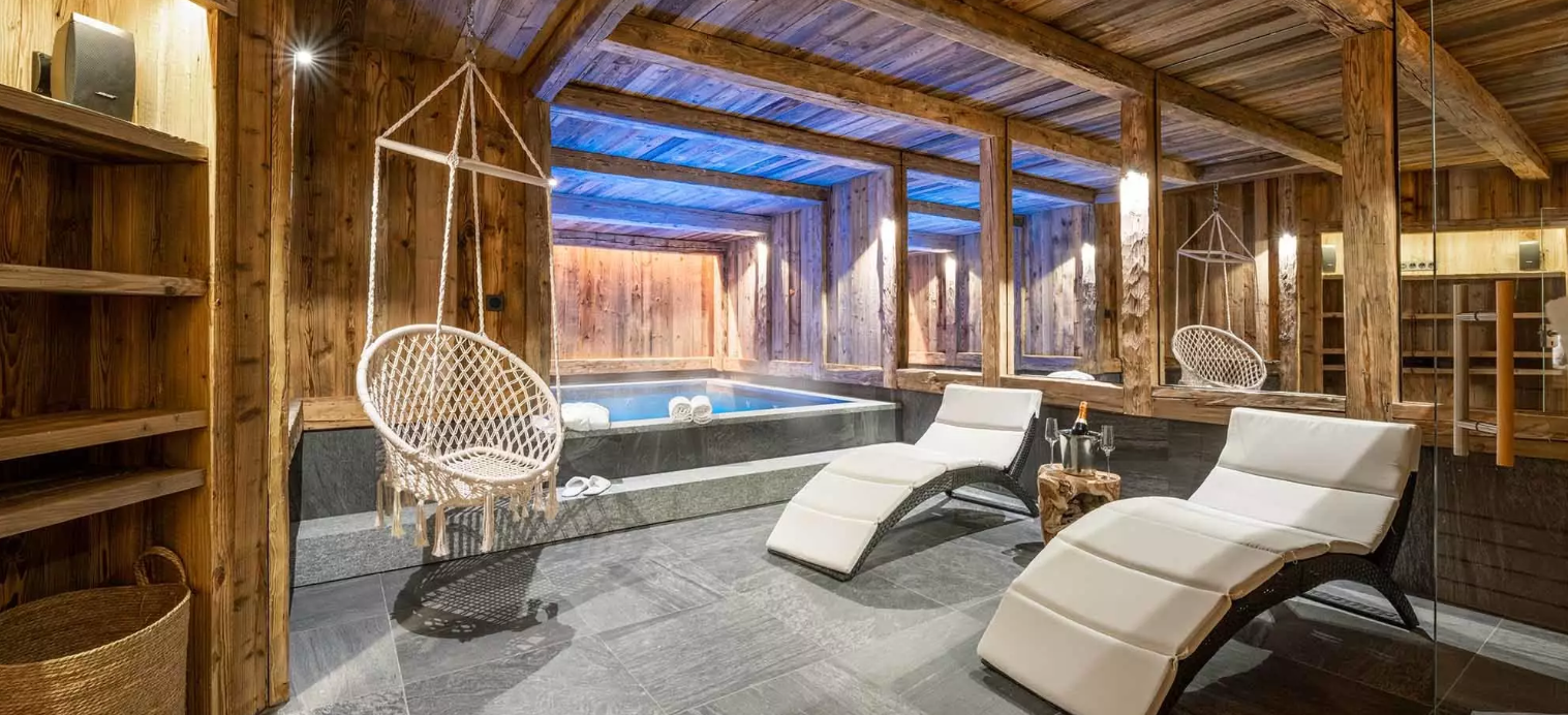 The lower ground features a laundry room as well as a lavish spa area with a sunken jacuzzi, a sauna and a rain shower so you can warm up and unwind after a long day of skiing, or simply skip the slopes for a day of relaxation and self-care.