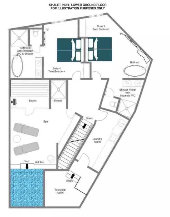 Finally, on the lower ground floor, you will find 2 en-suite bedrooms with twin beds (90x200cms). All bedrooms have TVs and the chalet is equipped with free WIFI throughout, perfect for if you need to catch up on some work or retreat back into your room to catch up on the latest episode of your favourite show.