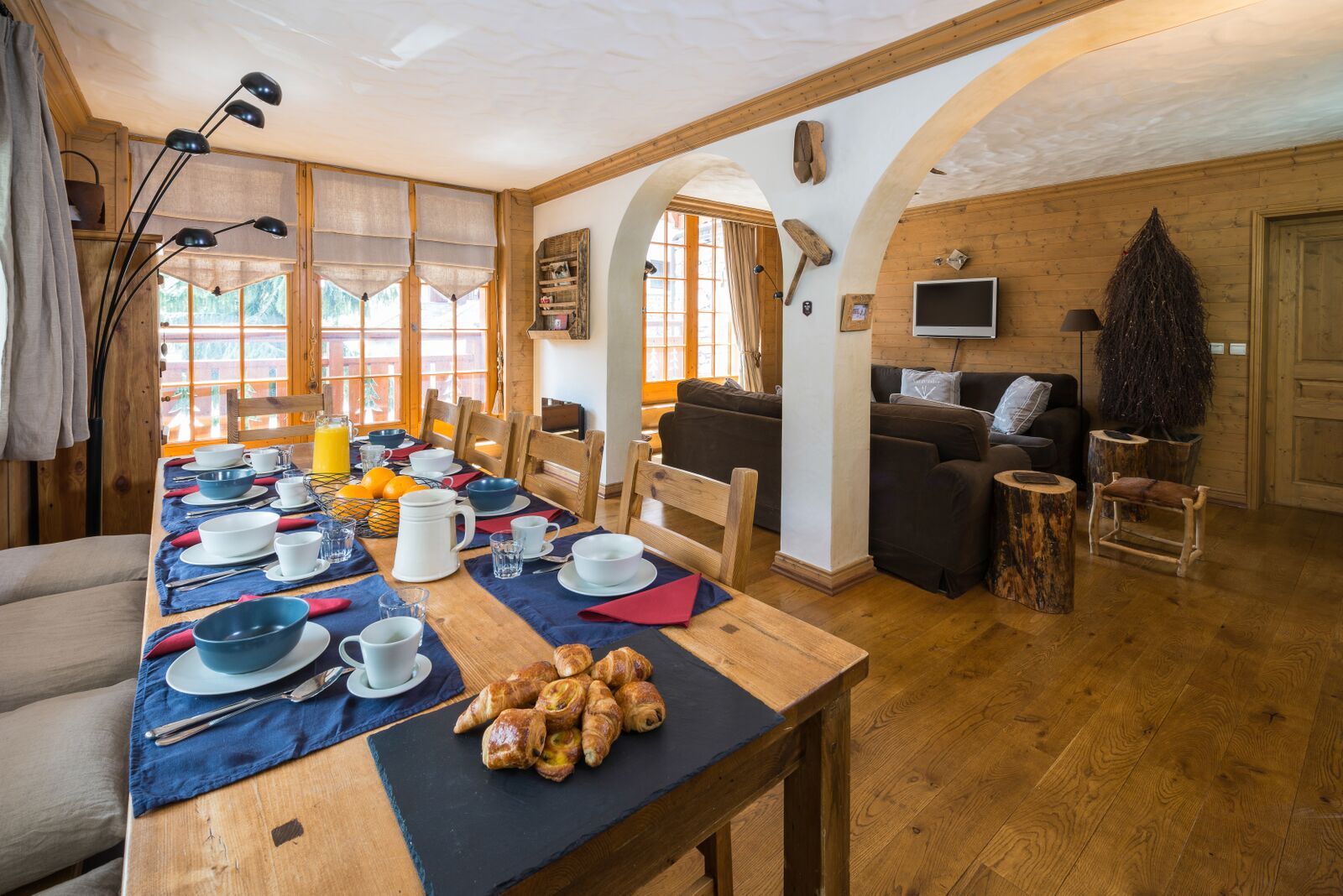 Throughout, Marmottes has been furnished with the perfect blend of traditional and modern furnishings. The open plan lounge, kitchen and dining area offer a great socialising space with balconies and a view to inspire in the mornings. Deep, comfortable sofas, perfect for sitting back and tucking into afternoon tea, will be a welcome sight after a hard day on the slopes.