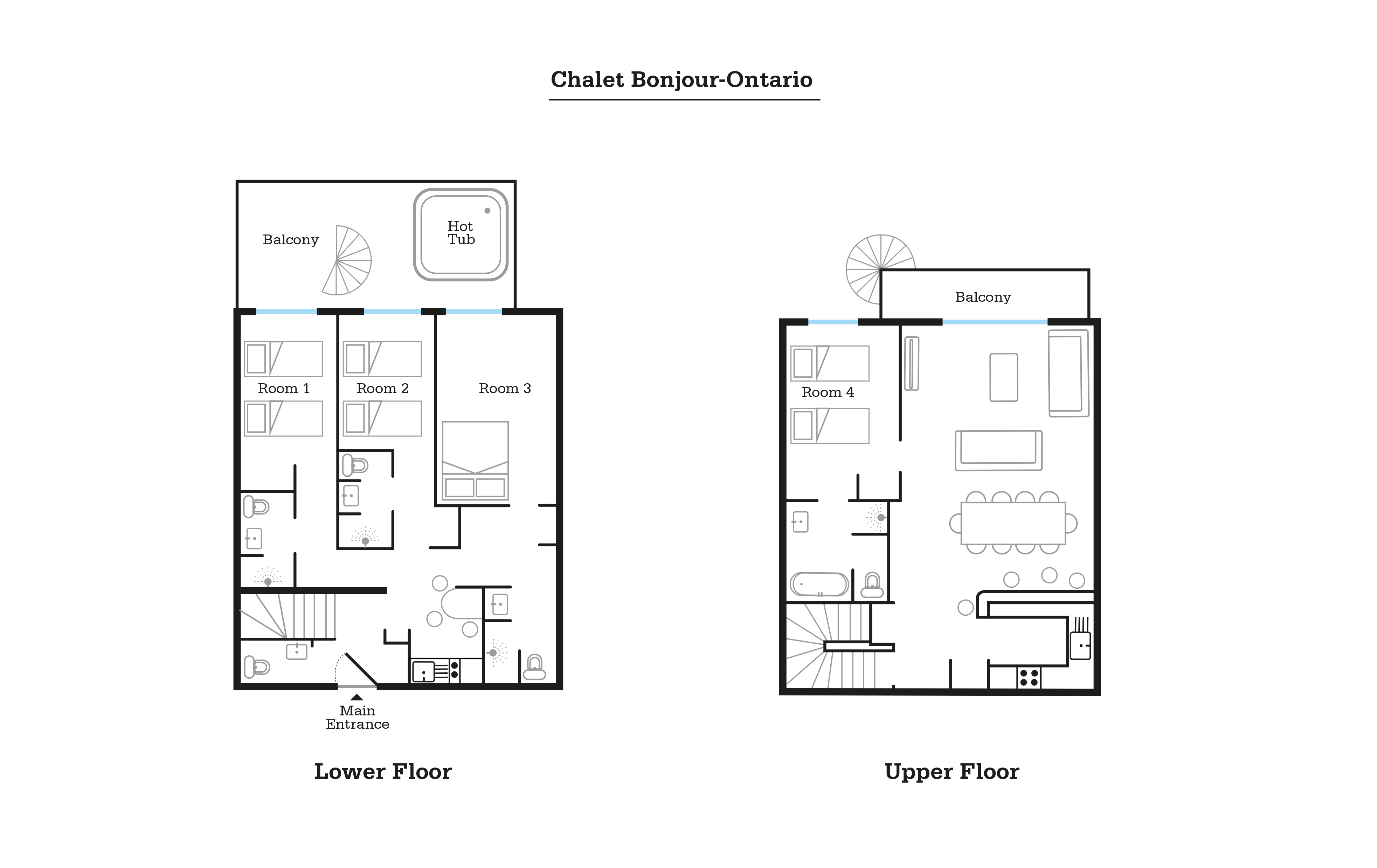 Chalet Ontario - sleeps 8 (room numbers in brackets):