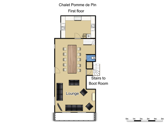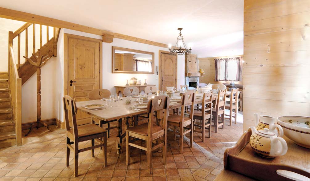 The attractive lounge / dining-room is comfortably sized for ten, and the fire offers a glowing warmth over which to enjoy your apéritif and canapés before dinner. Don't forget to bring your favourite DVDs for those blissful après ski moments curling up in front of a fire and a good film!
