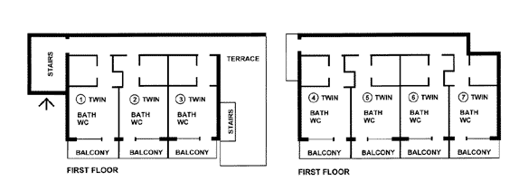 Room 7 - Twin room with bath, shower, basin, w.c. & balcony