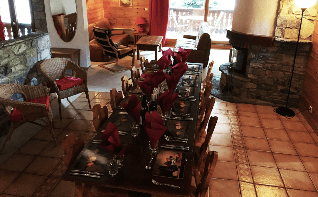 All guests, including children, usually eat together on the evening of arrival. On all other evenings we provide a simpler children’s tea at 6 pm for those under 14. On family weeks (Christmas, New Year, Half Term and Easter) children may eat with their parents if desired. For exclusive chalet bookings the group leader may request that the children eat with the group.