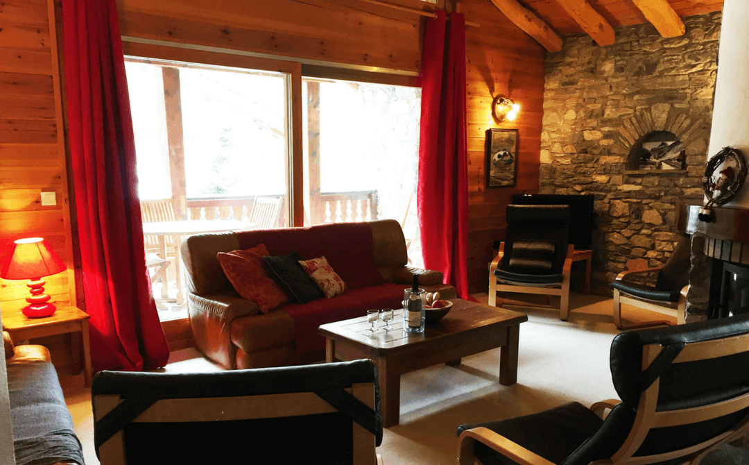 The stairs to the first-floor lead to an open plan kitchen & dining area with high ceilings and a comfortable lounge with fantastic views across the valley. There is plenty of space to relax and unwind after a hard day in the mountains. The sitting room includes a wood burning stove, a TV and there is free WiFi throughout the chalet.