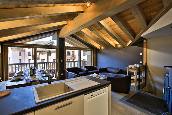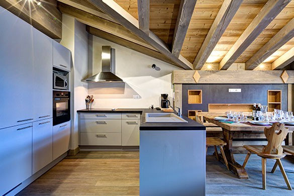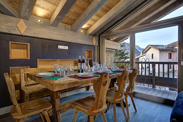 This self-catered chalet apartment was refurbished for the 2016 / 17 season with a new open-plan living and dining area, plus all but one bedrooms were made en suite and now all feature beds that can be made into twins or king-sized doubles. Built with traditional stone and wood finishes, the chalet has a modern alpine style with a homely feel. After a long day on the slopes of Val d’Isere you’re welcomed by heated boot dryers and a lovely open-plan living and dining area, with its fireplace and floor to ceiling windows looking out towards the Face de Bellevard. It is the perfect place to relax in comfort and luxury. This is a chalet apartment with all the right attributes; and after a renovating breath of fresh air, all the style too.