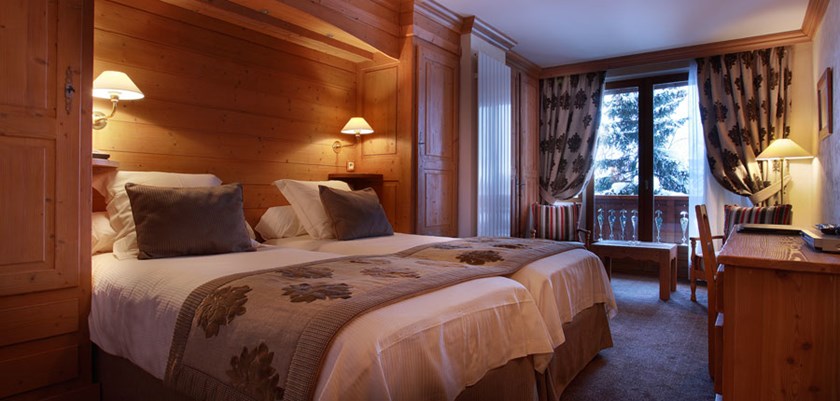 Twin rooms (B2) with a small balcony and village views and larger twins (C4) with balcony and piste or mountain views are available at a supplement.