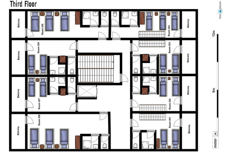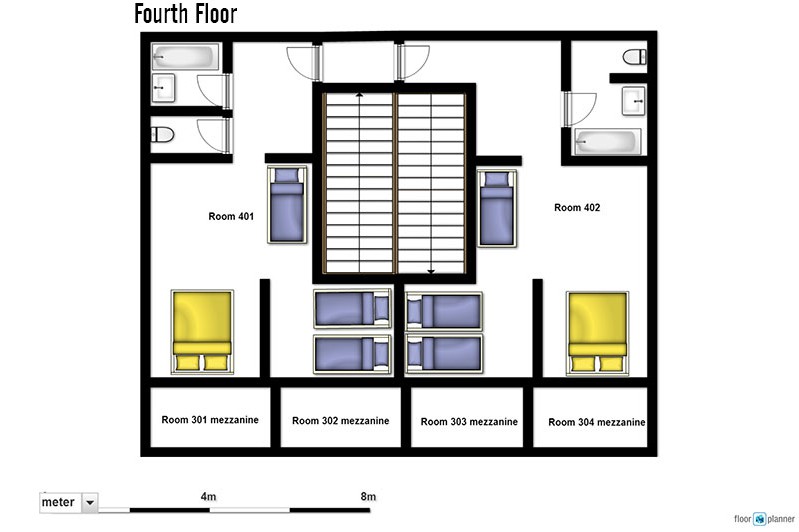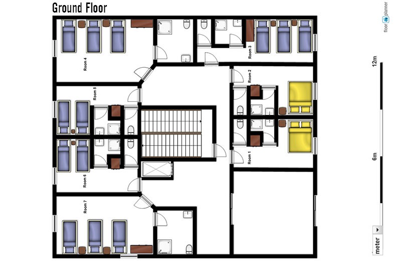 Triple room - sleeps 2-3: twin beds, single bed, private shower and WC.