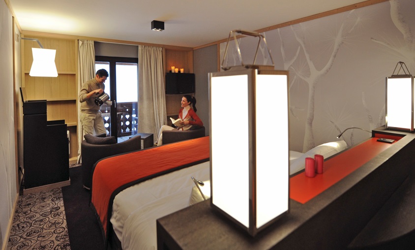 This spacious 29 m² (310 ft²) room decorated in the mountain spirit proposes quality comfort (minibar, flat-screen TV) and a lounge area.