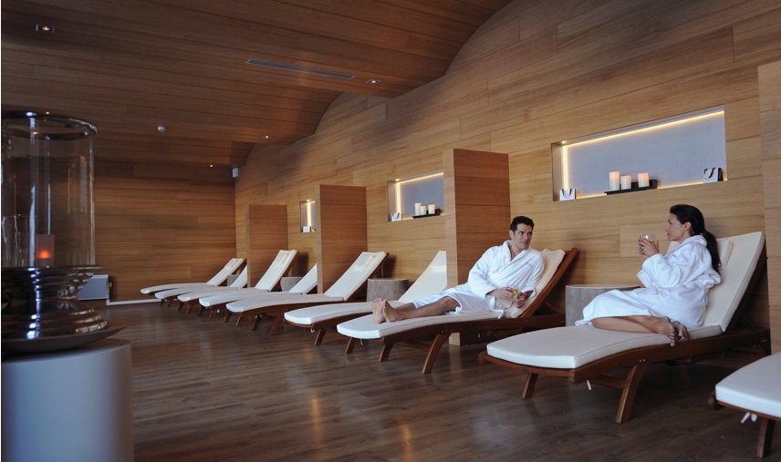 A number of intimate areas with armchairs and coffee tables and access to spacious outdoor terraces.
