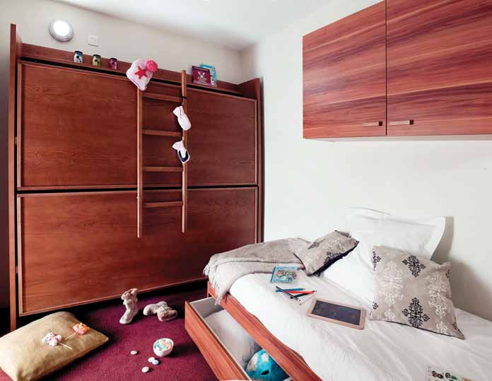 Two room apartment (A5 or Type D) 29m² – sleeps 2-5 Living room with single sofa bed and twin bedroom with bunk beds.